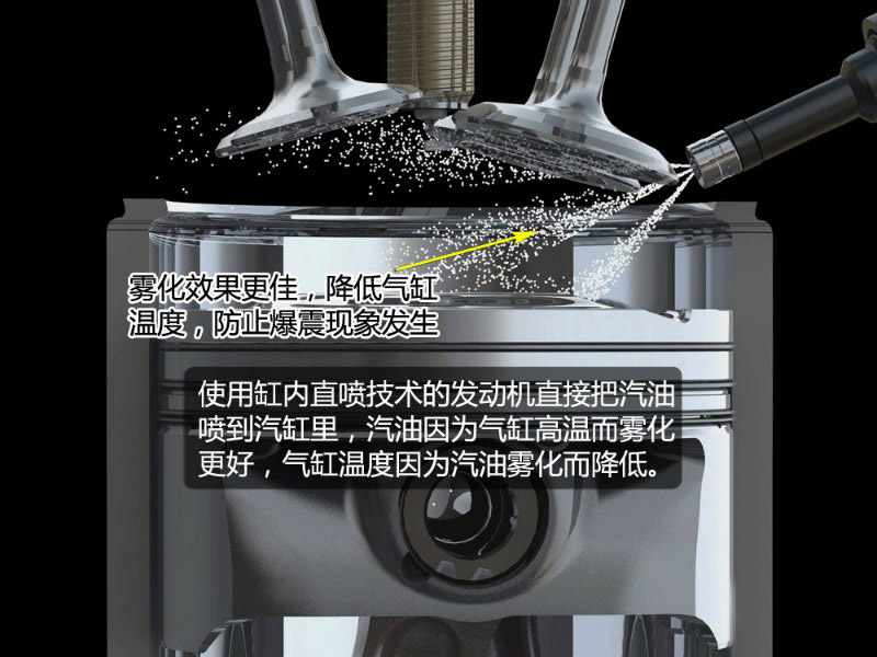 在過去的燃油噴射系統(tǒng)中,噴油嘴在進氣歧管中噴射汽油,汽油與空氣混合后再進入氣缸。這種傳統(tǒng)的汽油噴射方式使得汽油接觸到進氣歧管表面形成汽油壁膜,造成壁膜損失,增加油耗。而缸內直噴系統(tǒng)的噴嘴直接往氣缸內噴射汽油,壁膜損失大大降低,從而提升燃油使用效率。