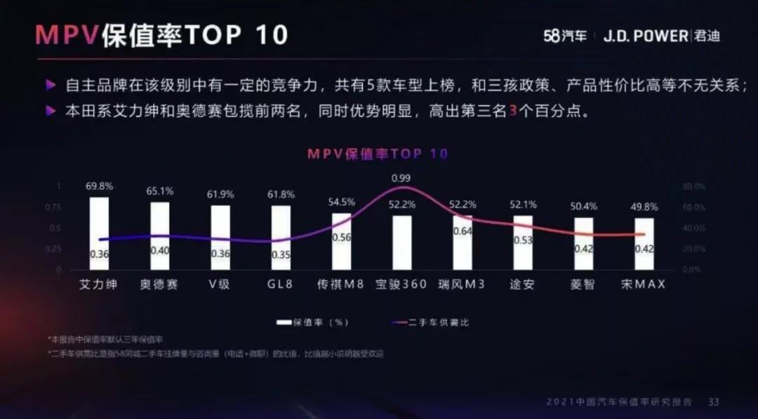 艾力紳能夠脫穎而出,僅從契合需求的角度來解釋是不夠的。如果僅靠產(chǎn)品力就能讓消費者買單的話,就不會出現(xiàn)“叫好不叫座”的車型了。除了產(chǎn)品本身的優(yōu)勢之外,車主為什么會選擇艾力紳?中國消費者有“隨大流”的習(xí)慣。對于消費者來說,手握30萬預(yù)算,要買一臺偏家用的MPV,銷量也是一個重要的參考因素。在11月份銷量榜單上,日系MPV里首先看到的就是艾力紳,在缺芯嚴(yán)重的情況下,艾力紳11月銷量依舊達到了5296輛,這樣的銷量表現(xiàn)對消費者來說無疑是一枚定心丸。除了優(yōu)秀的銷量之外,艾力紳的品質(zhì)與口碑也是有目共睹的。自國產(chǎn)以來,艾力紳就一直以高品質(zhì)、穩(wěn)定性優(yōu)秀著稱,保值率就是這方面的一個體現(xiàn)。保值率高意味著該車型擁有優(yōu)秀的穩(wěn)定性與質(zhì)量,看保值率買車也是中國消費者的一大特點。在由58汽車與J.D.Power聯(lián)合發(fā)布的2021年中國汽車保值率研究排名中,艾力紳憑借69.8%的保值率獲得同級別車型保值率第一名,再次印證了艾力紳的優(yōu)秀品質(zhì)。