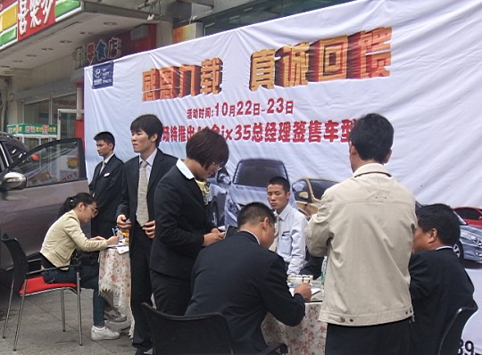 另外,總經(jīng)理現(xiàn)場全天候的監(jiān)督簽售活動車型IX35,