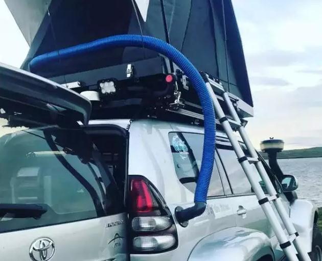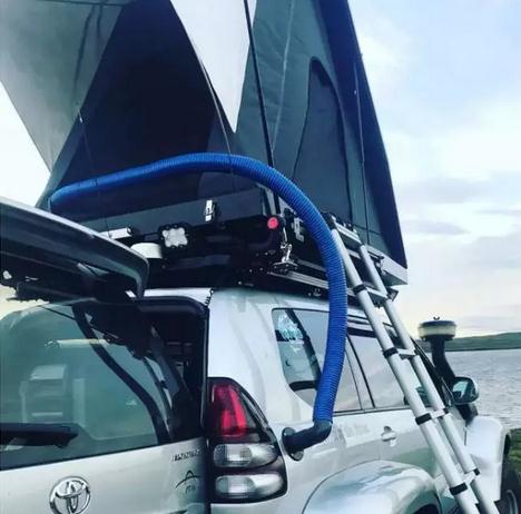 尾部相對前面就只加了一個拖車鉤,不過車頂卻是大做文章。除了加裝行李架之外,連帳篷也搬到了車頂,這樣子可以隨時在戶外過夜了!另外有車友知道那根藍色的管子是什么作用的嗎?